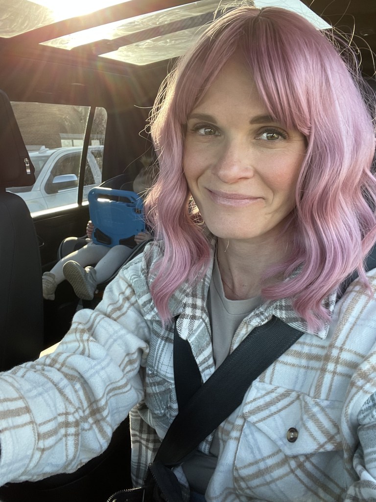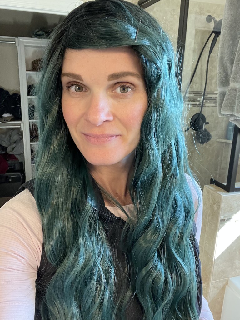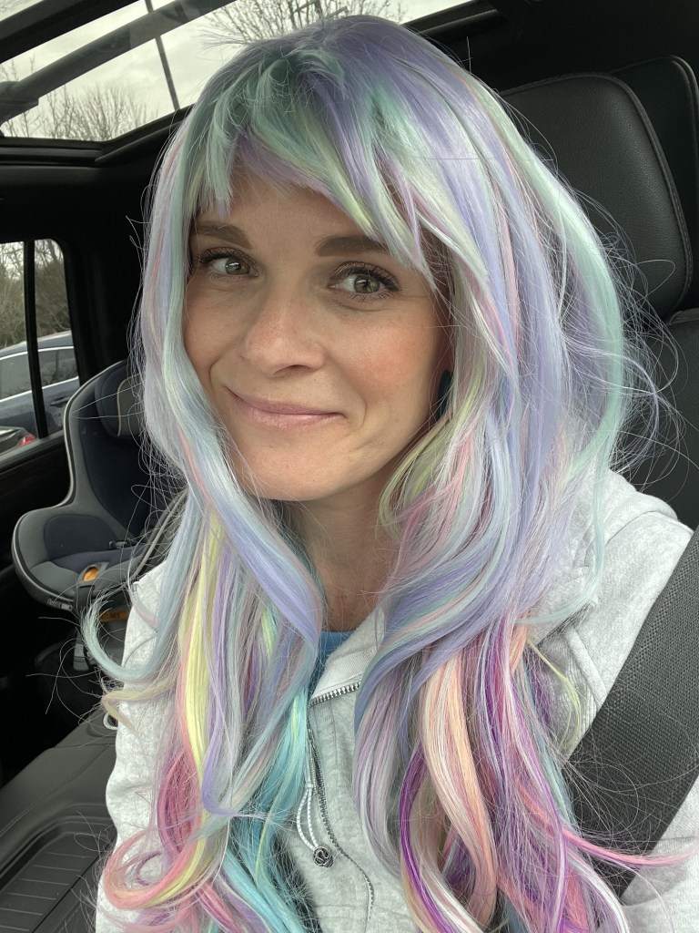 I have a couple “normal” wigs for when I feel it’s most important to go incognito. (school plays, weddings, baby showers etc.) But even wearing those all the time feels inauthentic. Wearing the fun colors to match whatever vibe i’m trying to achieve for the day brings out a side of me I didn’t know needed nurturing.
