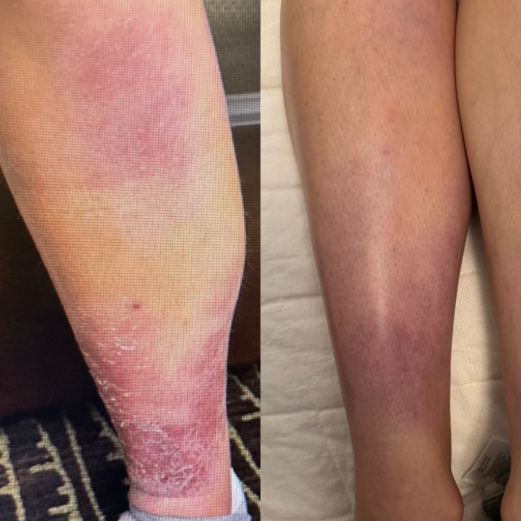 Below are before and after pictures of what my legs looked back in December/January and what they look like today.
