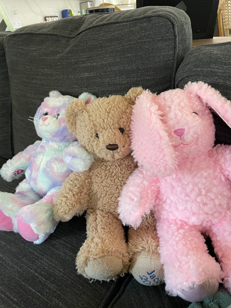 Each lovie has a 20 second message in my voice, singing our special bedtime songs. These are made by Build A Bear.